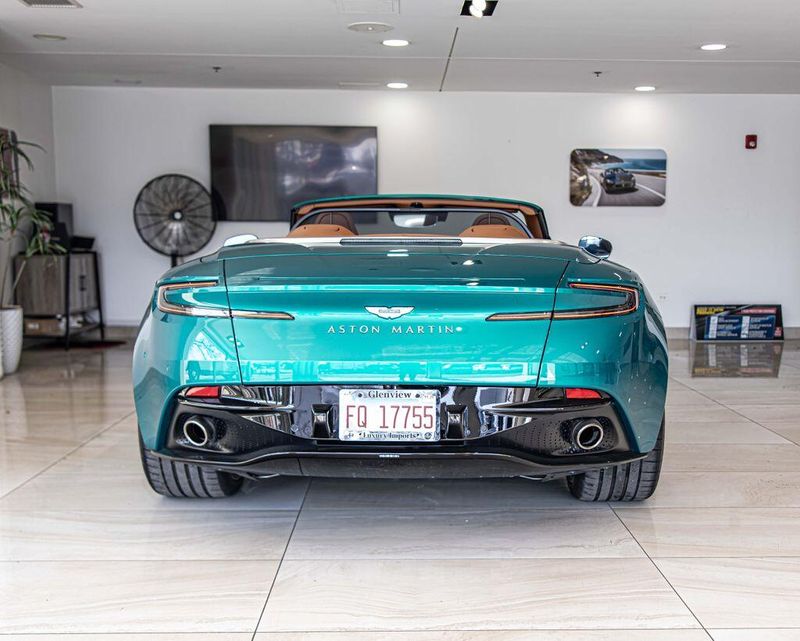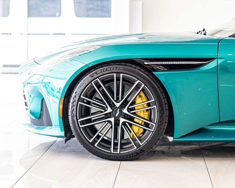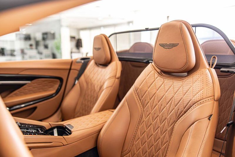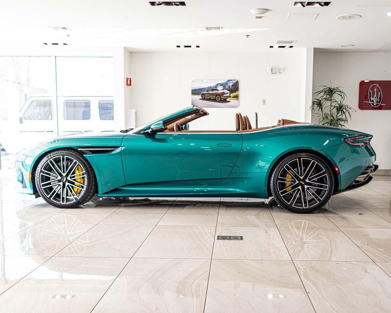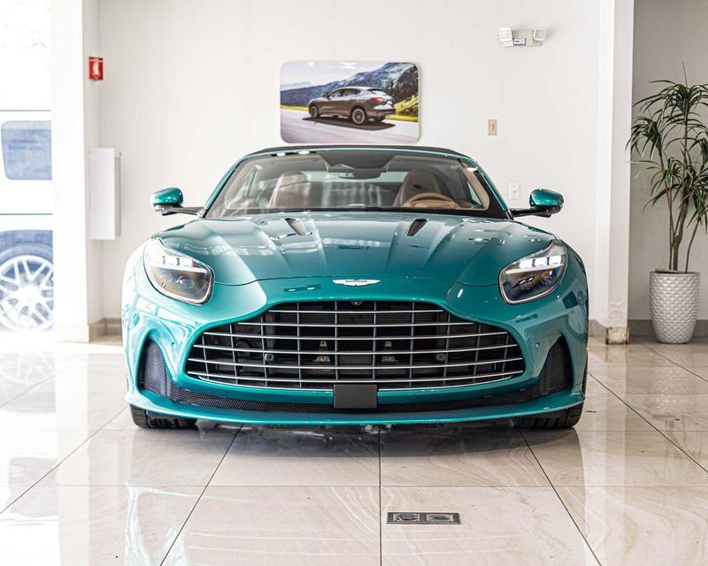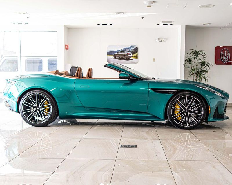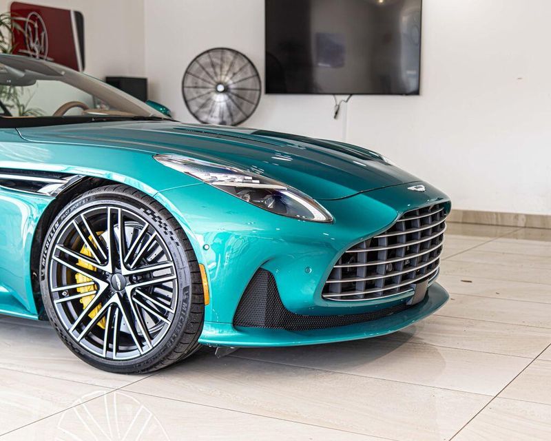 2025 Aston Martin DB12 Volante RWD V8 Podium Green One Owner, Clean CARFAX, Navigation, Leather Seats, Heated Seats, Backup Camera, Memory Seats, Cooled Seats, Premium Sound System, Premium Audio, Multi-Zone Climate Control, 16 Way Electric Front Seats w/Memory, Bowers & Wilkins 1170 Watts Surround Sound Audio Sys, Carbon Ceramic Brakes, Contrast Stitching, Heated Sports Steering Wheel, Inspire Comfort Environment - Monotone, Leather & Gloss Black IP/Door Trim Inlay, Leather steering wheel, Navigation System, Satin Dark Chrome Interior Jewellery, Seat Ventilation, Semi-Aniline Leather Seat Trim, Wheels: 21'' Multi-Spoke Satin Black DT Forged, Yellow Painted Brake Calipers.