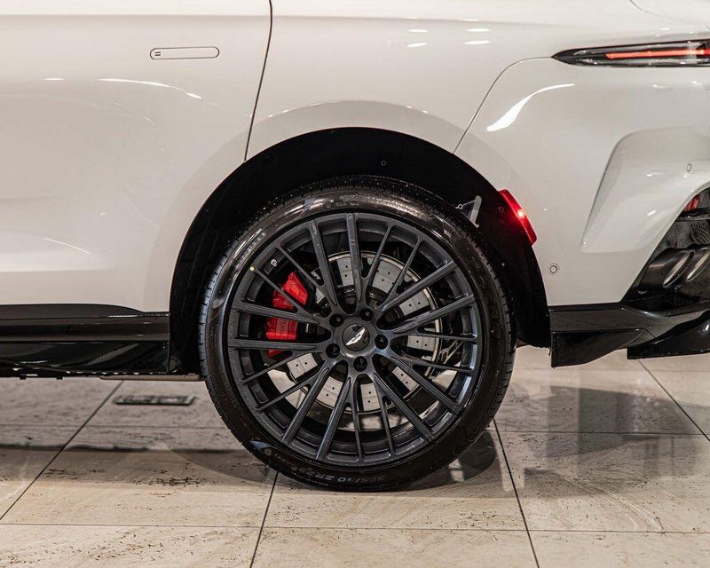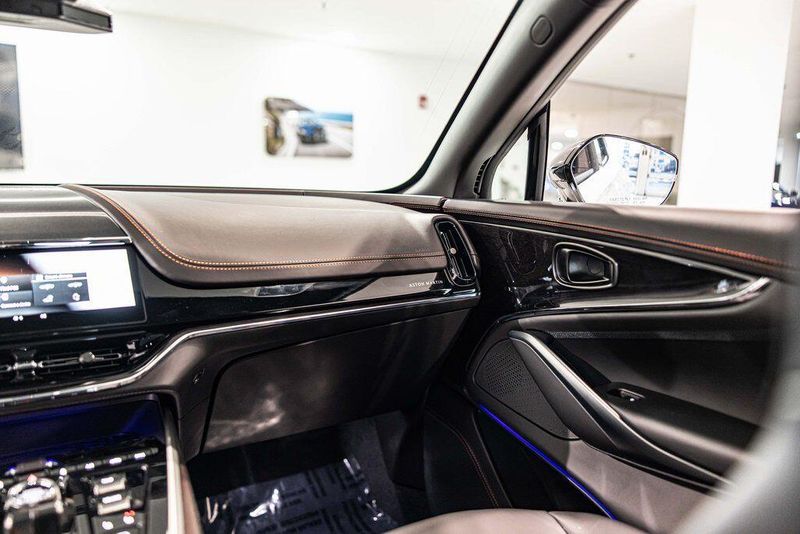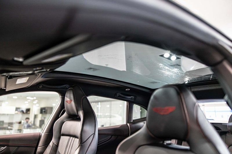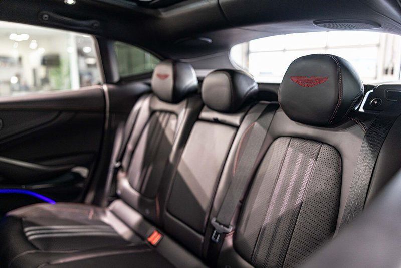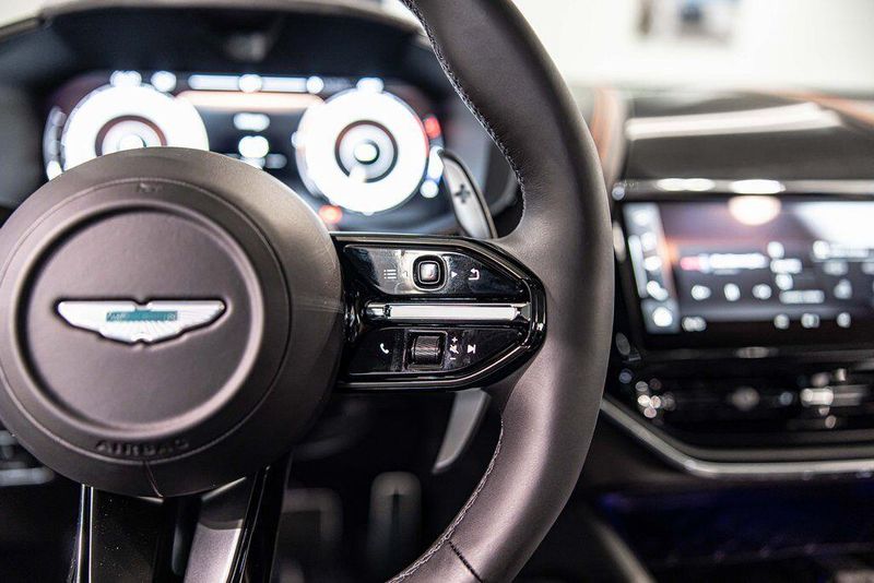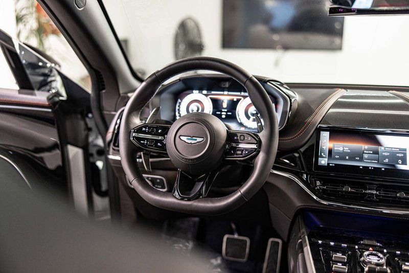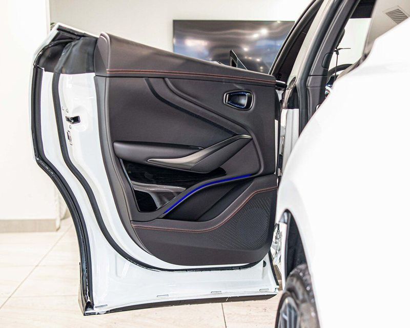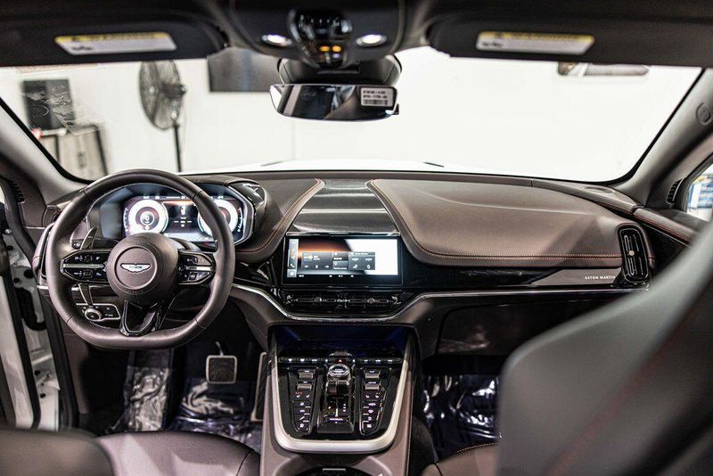 Contrast Stitching 1 - Spicy Red Smoked Rear Lamps Aston Martin Black Script and Wing Badging Interior - Inspire Sport - Monotone Heated Steering Wheel Black Pack - Upper Trim Inlay - Smoked Oak Gloss Wood Front Grille - Gloss Black Brake Calipers (CCB) - Red Interior Jewellery Pack - Satin Dark Chrome Wheels - 23 Inch Forged - Textured Black, Black Metallic - Semi Aniline/Black Metallic - Semi Aniline, Lunar White, ABS brakes, Active Cruise Control, Alloy wheels, Compass, Electronic Stability Control, Front dual zone A/C, Heated door mirrors, Heated front seats, Heated rear seats, Heated Seats, Illuminated entry, Low tire pressure warning, Navigation System, Power Liftgate, Remote keyless entry, Traction control.