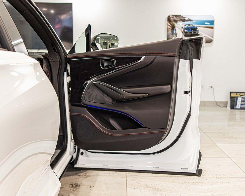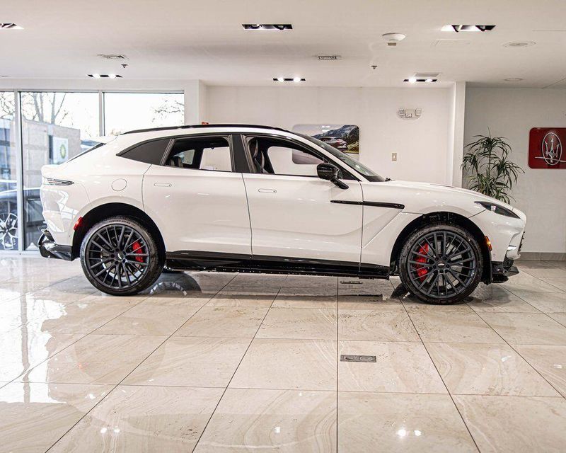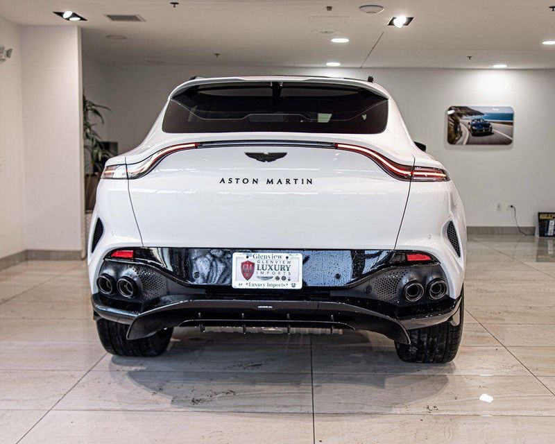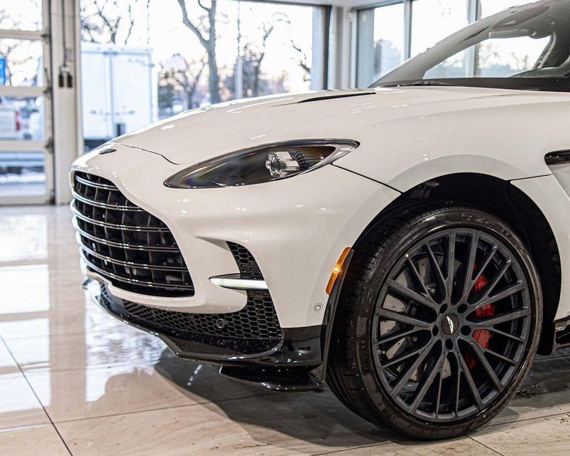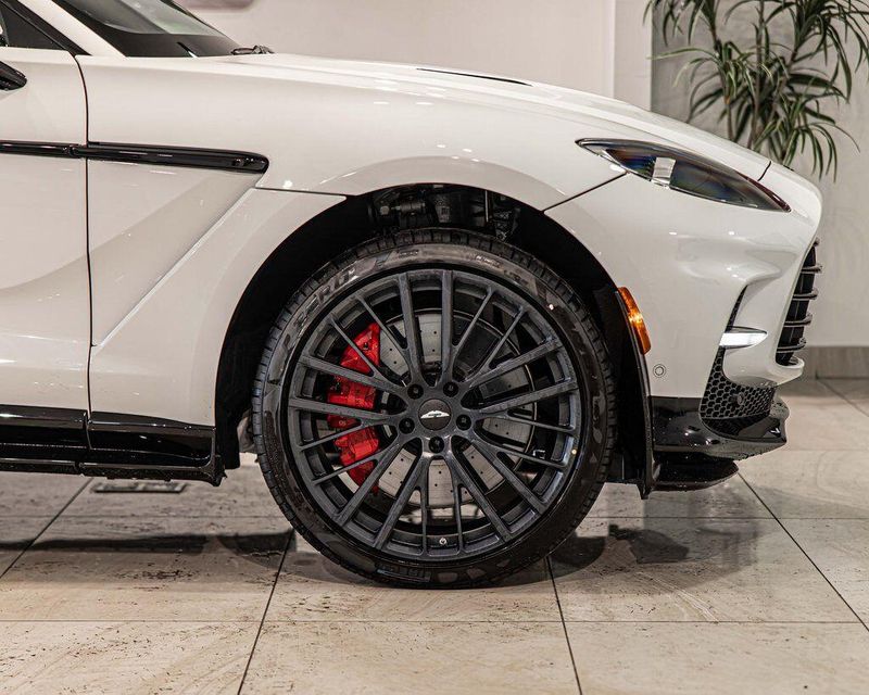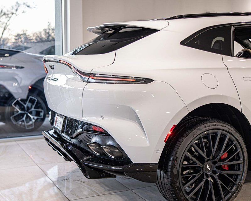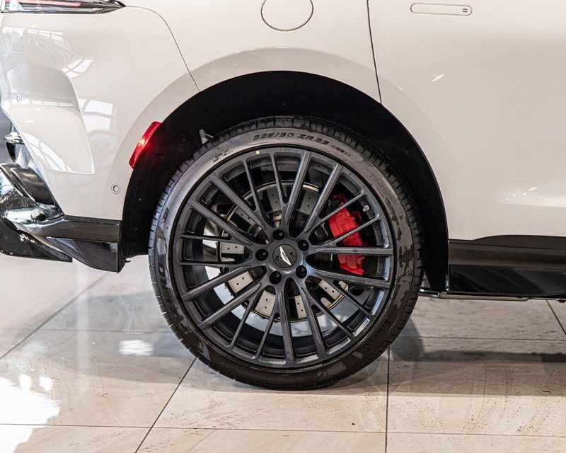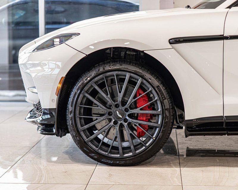 Contrast Stitching 1 - Spicy Red Smoked Rear Lamps Aston Martin Black Script and Wing Badging Interior - Inspire Sport - Monotone Heated Steering Wheel Black Pack - Upper Trim Inlay - Smoked Oak Gloss Wood Front Grille - Gloss Black Brake Calipers (CCB) - Red Interior Jewellery Pack - Satin Dark Chrome Wheels - 23 Inch Forged - Textured Black, Black Metallic - Semi Aniline/Black Metallic - Semi Aniline, Lunar White, ABS brakes, Active Cruise Control, Alloy wheels, Compass, Electronic Stability Control, Front dual zone A/C, Heated door mirrors, Heated front seats, Heated rear seats, Heated Seats, Illuminated entry, Low tire pressure warning, Navigation System, Power Liftgate, Remote keyless entry, Traction control.