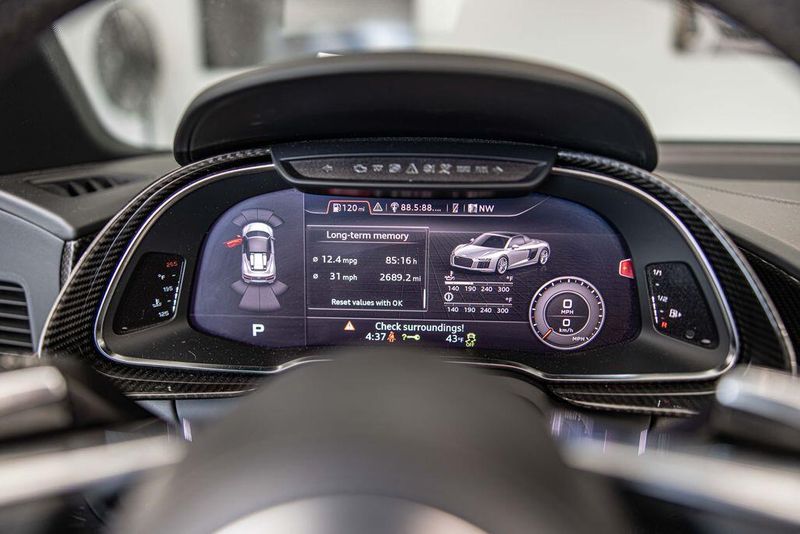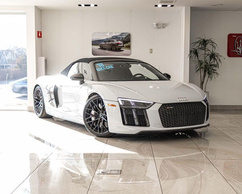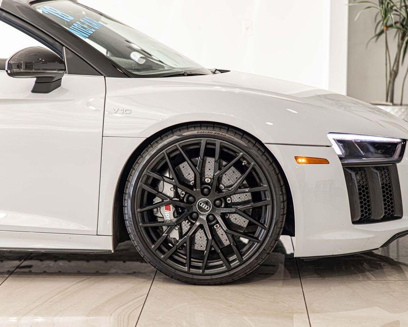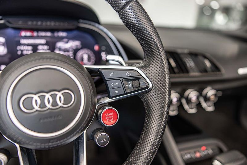 2018 Audi R8 5.2 Plus quattro quattro 5.2L V10 FSI DOHC Plus Suzuka Gray Metallic/Black Roof Clean CARFAX, AWD, Navigation, Leather Seats, Heated Seats, Backup Camera, Memory Seats, Cooled Seats, Premium Sound System, Premium Audio, Multi-Zone Climate Control, Black Leather, 18-Way Power Seats, Diamond Stitch Leather Package, Full Leather Package, Leather Diamond Stitch Seats, Navigation System, Wheels: 19'' 5-Double-Spoke Design Forged. Odometer is 1935 miles below market average!