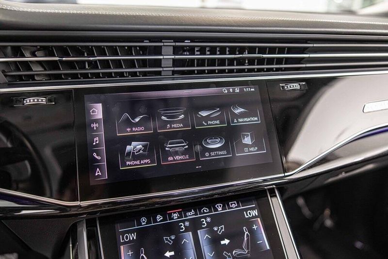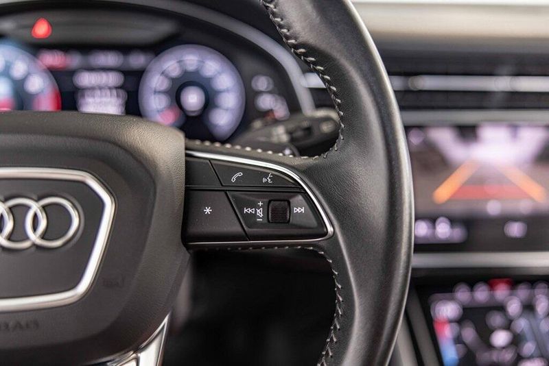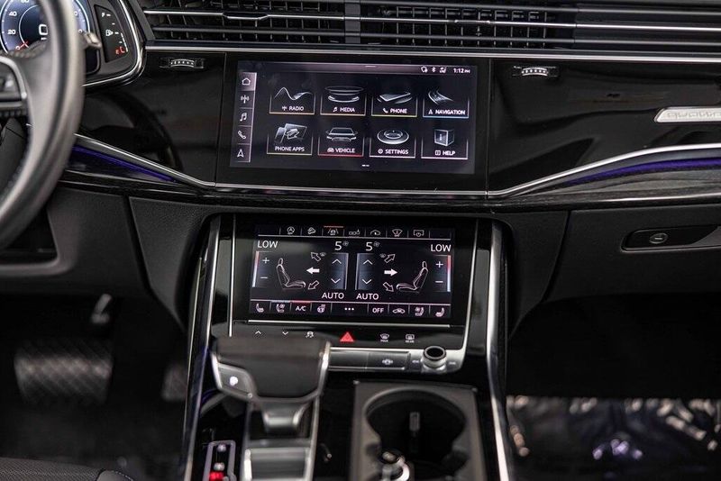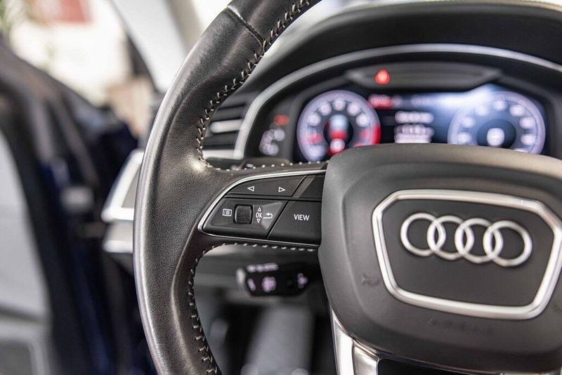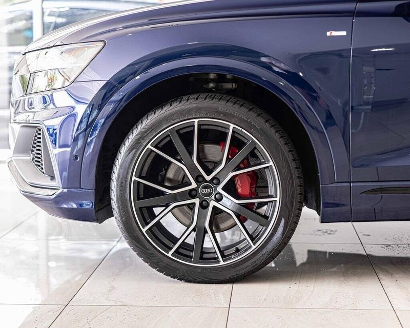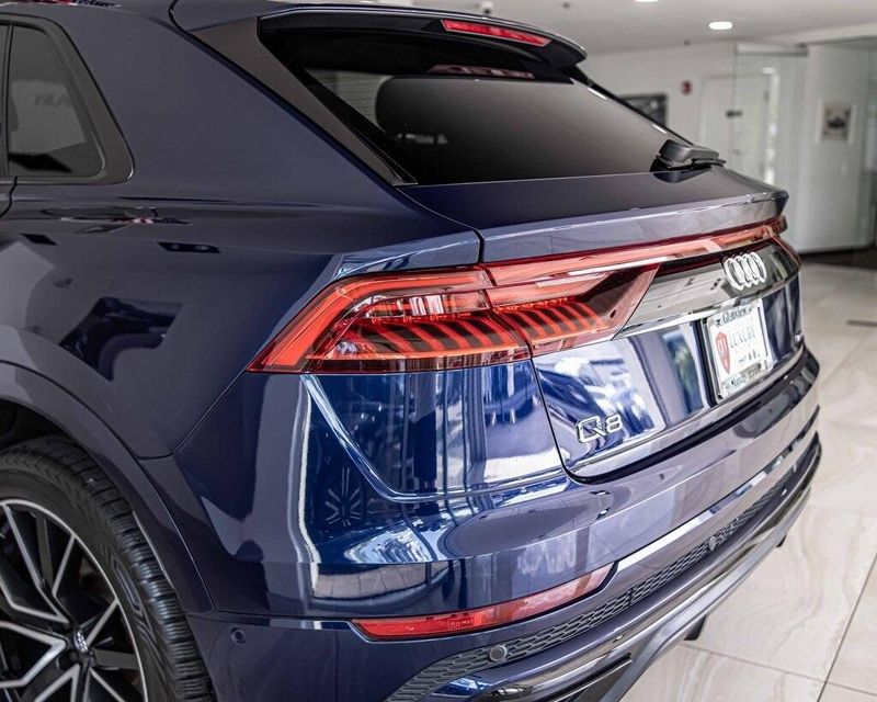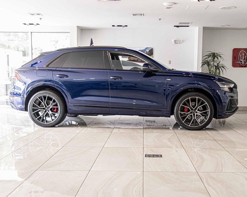 2019 Audi Q8 3.0T Prestige quattro quattro 3.0L V6 Turbocharged DOHC 24V LEV3-ULEV125 335hp Navarra Blue Metallic AWD, Navigation, Sunroof, Leather Seats, Heated Seats, Backup Camera, Memory Seats, Cooled Seats, Premium Sound System, Premium Audio, Multi-Zone Climate Control, 4-Zone Climate Control, Alu Touch-Sensitive Interior Buttons, Ambient Interior Lighting Plus Package, Audi Active Lane Departure Warning, Audi Adaptive Cruise Assist, Audi Phone Box w/Wireless Charging, Audi Side Assist w/Pre Sense Rear, Bang & Olufsen 3D Premium Sound System, Black Single Frame Mask, Convenience Package, Driver Assistance Package, Electric Sunblinds for Rear Side Windows, Front & Rear Doors Audi Beam-Rings, Front & Rear S line Bumpers, HD Matrix Design LED Headlights, Headlight Washer System, Heads-Up Display, Heated Power Folding Auto-Dimming Exterior Mirrors, High-Beam Assist, Illuminated Door Sills, Leather Dashboard, Navigation System, Power Door Closers, Prestige, Red Brake Calipers, S line Fender Badges, S line Illuminated Door Sills, Top View Camera System, Traffic Sign Recognition, Ventilated Front Seats, Wheels: 21'' 5-Spoke W-Design, Wheels: 22'' Audi Sport 5-V-Spoke Star Design, Year 1 Package. Odometer is 35351 miles below market average!
