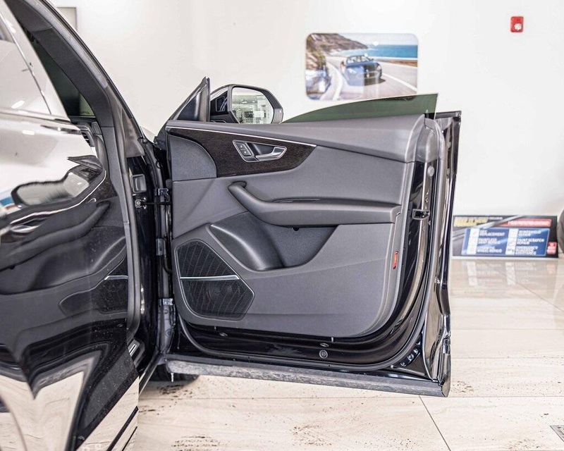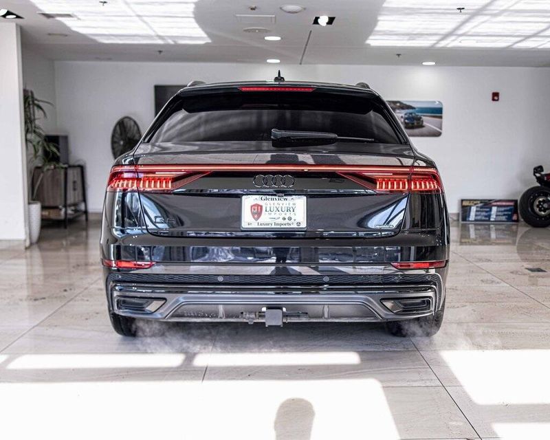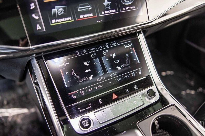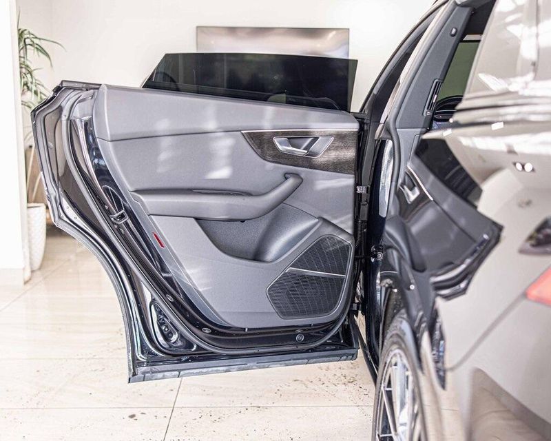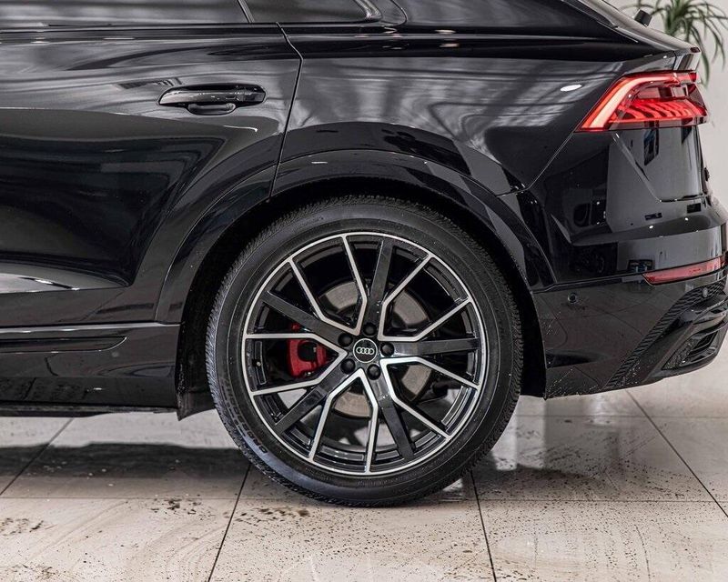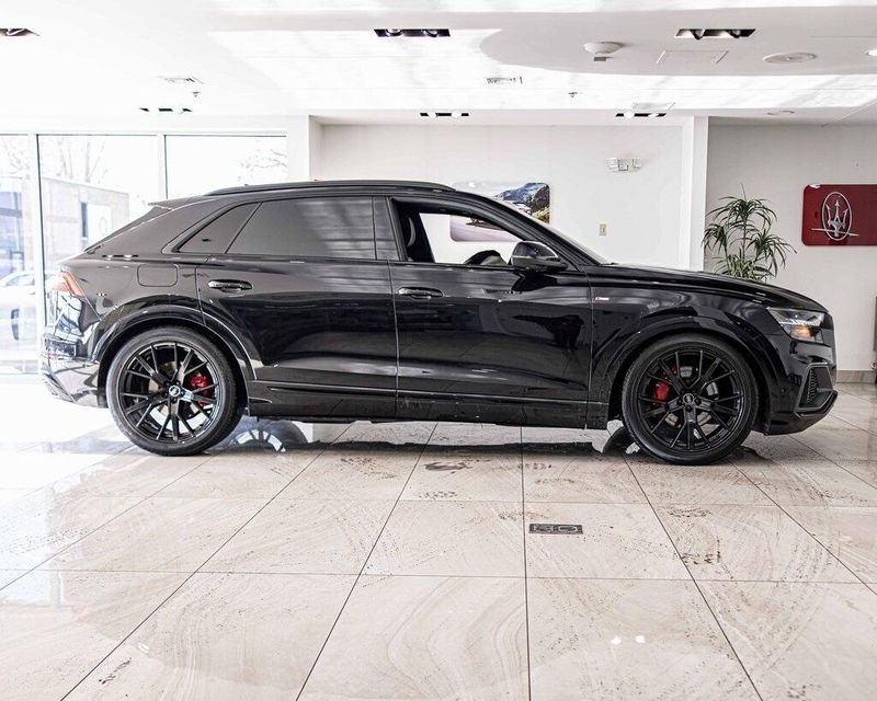 2021 Audi Q8 55 Prestige quattro quattro 3.0L V6 Turbocharged DOHC 24V LEV3-ULEV70 335hp Orca Black Metallic One Owner, Clean CARFAX, AWD, Navigation, Sunroof, Leather Seats, Heated Seats, Backup Camera, Memory Seats, 4-Wheel-Steering, 4-Zone Climate Control, Adaptive Air Suspension, Adaptive Chassis Package, Audi Active Lane Departure Warning, Audi Adaptive Cruise Assist, Audi Phone Box w/Wireless Charging, Bang & Olufsen 3D Advanced Sound System, Bang & Olufsen 3D Premium Sound System, Contour/Ambient LED Interior Lighting Package, Convenience Package, Driver & Passenger Front Seats w/Ventilation, Electric Sun Blinds for Rear Side Windows, Executive Package, HD Matrix-Design LED Headlights, Head-Up Display, Headlight Washers, Heated 3-Spoke Multifunction Steering Wheel, Heated Auto-Dimming Power Folding Exterior Mirrors, Heated Rear Seats, Illuminated Door Sills, Intersection Assist, LED DRL & Taillights, Navigation System, Navigation system: Audi MMI Navigation plus with Touch Response, Power moonroof, Power Soft-Closing Doors, Prestige Package, S line Fender Badges, S line Front & Rear Bumpers, S line Illuminated Door Sills, S line Side Sills, S line Style Package, S-Line Exterior Package, Top View Camera System, Traffic Sign Recognition, Upper Dashboard in Leather w/Contrast Stitching, Wheels: 22'' Audi Sport 5-V-Spoke Star Design.