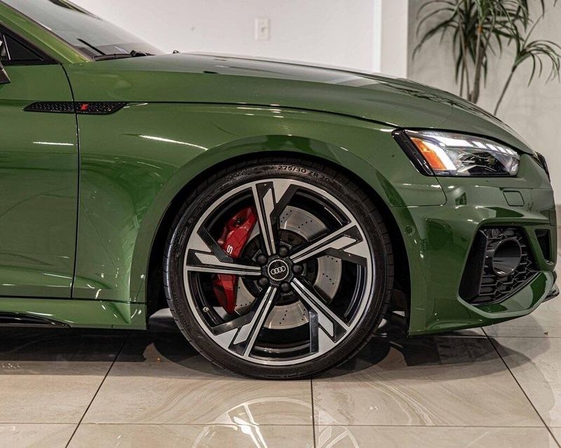 2021 Audi RS 5 2.9T quattro quattro 2.9L V6 Turbocharged DOHC 24V LEV3-ULEV70 444hp Sonoma Green Metallic AWD, Navigation, Sunroof, Leather Seats, Heated Seats, Backup Camera, Memory Seats, Cooled Seats, Premium Sound System, Adaptive Cruise Control w/Traffic Jam Assist, Audi Active Lane Assist, Audi Connect PRIME & PLUS, Audi Pre-Sense Rear, Audi Side Assist, Black Audi Rings & Badges (4ZP), Black Optic Package, Dynamic Package, Exterior Mirror Housings in High-Gloss Black, Front Spoiler Trim in High-Gloss Black, Hands-On Detection Steering Wheel, Head-Up Display, High-Gloss Black Exterior Elements, Matte Alu Optic Exterior Mirror Housing, MMI Navigation Plus, Navigation Package, Navigation System, Park Assist, Rear Diffuser Trim in High-Gloss Black, Red Brake Calipers, RS Driver Assistance Package, RS Sport Exhaust System w/Black Tips, RS Sport Suspension Plus w/Dynamic Ride Control, Side Assist Package, Top View Camera System, Traffic Sign Recognition, Wheels: 20'' 5-Arm-Flag Forged Design. Recent Arrival! Priced below KBB Fair Purchase Price! Odometer is 23499 miles below market average!