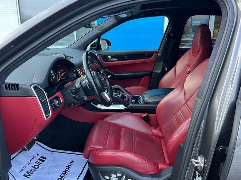 2021 Porsche Cayenne Turbo AWD 4.0L V8 Quartzite Grey Metallic Clean CARFAX, AWD, Navigation, Sunroof, Leather Seats, Heated Seats, Backup Camera, Memory Seats, Cooled Seats, Premium Sound System, Premium Audio, Multi-Zone Climate Control, Bluetooth, Hands-Free, USB Port, Black/Bordeaux Red w/Leather Seat Trim w/Two-Tone, 18-Way Adaptive Sport Seats w/Memory Package, 4-Zone Climate Control, Adaptive suspension, Ambient Lighting, Assistance Package, Burmester 3D High-End Surround Sound System, Comfort Access, Front Seat Ventilation, Head-Up Display, Lane Change Assist (LCA), LED-Matrix Headlights in Black w/PDLS+, LED-Matrix Headlights w/PDLS+, Navigation System, Night Vision Assist, Porsche InnoDrive w/Adaptive Cruise Control, Porsche Torque Vectoring Plus (PTV +), Premium Package Plus, Seat Belts in Chalk, Soft Close Doors, Sport Chrono Package (8LC), Sport Chrono Stopwatch or Compass Dial in White, Sport Exhaust System incl. Tailpipes in Silver, Sport Tailpipes in Silver, Surround View, Thermally & Noise Insulated Glass, Under Door Puddle Light Projectors, Wheels: 22'' Cayenne Sport Classic incl. Arch Ext. Recent Arrival!
