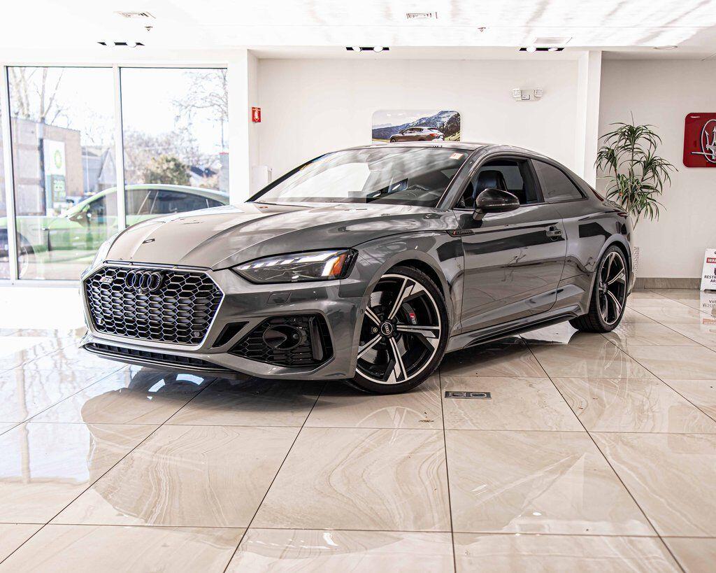 2022 Audi RS 5 2.9T quattro quattro 2.9L V6 Turbocharged DOHC 24V LEV3-ULEV70 444hp Daytona Gray Pearl Clean CARFAX, AWD, Navigation, Sunroof, Leather Seats, Heated Seats, Backup Camera, Memory Seats, Cooled Seats, Premium Sound System, Premium Audio, Multi-Zone Climate Control, Bluetooth, Hands-Free, USB Port, Portable Audio Connection, Apple CarPlay/Android Auto, 174 mph Top Speed Limiter, Adaptive Cruise Control w/Traffic Jam Assist, Audi Active Lane Assist, Audi Connect PRIME & PLUS, Audi Pre-Sense Rear, Audi Side Assist, Black Optic Carbon Package, Black Optic Package, Carbon Engine Cover, Carbon Exterior Mirror Housings, Carbon Front Spoiler & Side Trim, Carbon Rear Lip Spoiler & Diffuser Trim, Ceramic Front Brakes, Dynamic Package, Dynamic Plus Package, Exterior Mirror Housings in High-Gloss Black, Front Spoiler Trim in High-Gloss Black, Gray Brake Calipers, Hands-On Detection Steering Wheel, Head-Up Display, High Gloss Black Exterior Elements, High-Gloss Black Exterior Elements, Matte Alu Optic Exterior Mirror Housing, MMI Navigation Plus, Navigation Package, Navigation System, Park Assist, Rear Diffuser Trim in High-Gloss Black, Red Brake Calipers, RS Driver Assistance Package, RS Sport Exhaust System w/Black Tips, RS Sport Suspension Plus w/Dynamic Ride Control, Side Assist Package, Top View Camera System, Traffic Sign Recognition, Wheels: 20'' 5-Arm-Flag Forged Design.