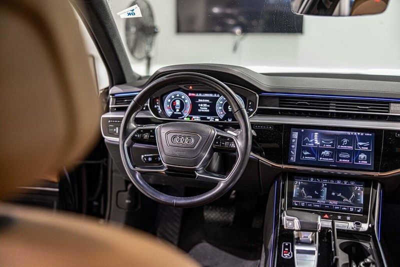 2024 Audi A8 L 55 quattro quattro 3.0L V6 Turbocharged DOHC 24V LEV3-ULEV70 335hp Sebring Black Crystal Effect One Owner, Clean CARFAX, AWD, Navigation, Sunroof, Leather Seats, Heated Seats, Cognac Brown w/Valcona Leather Seat Upholstery, 20'' 10-Parallel-Spoke-Design Wheels, Adaptive Cruise Assist w/Lane Guidance, Alu-Optic Buttons, Audi Side Assist w/Pre Sense Rear, Black Audi Rings & Model Badges, Black Brake Calipers, Black Optic Package, Black Optic Plus Package, Comfort Plus Package, Digital Matrix-Design LED Headlights, Dual-Pane Acoustic Glass for Side Windows, Executive Package, Front Seat Massage Function, Head-Up Display, Heated Front Seat Armrests, Heated Rear Outboard Seats, Heated Steering Wheel, Intersection Assist, LED Interior Lighting Plus Package, Navigation system: MMI Navigation plus, Remote Park Assist Plus, Traffic Sign Recognition, Valcona Leather Seat Upholstery, Wheels: 21'' 10-Spoke Design w/Gloss Black Finish, Wheels: 21'' 10-Y-Spoke-Evo-Design. 19/28 City/Highway MPG