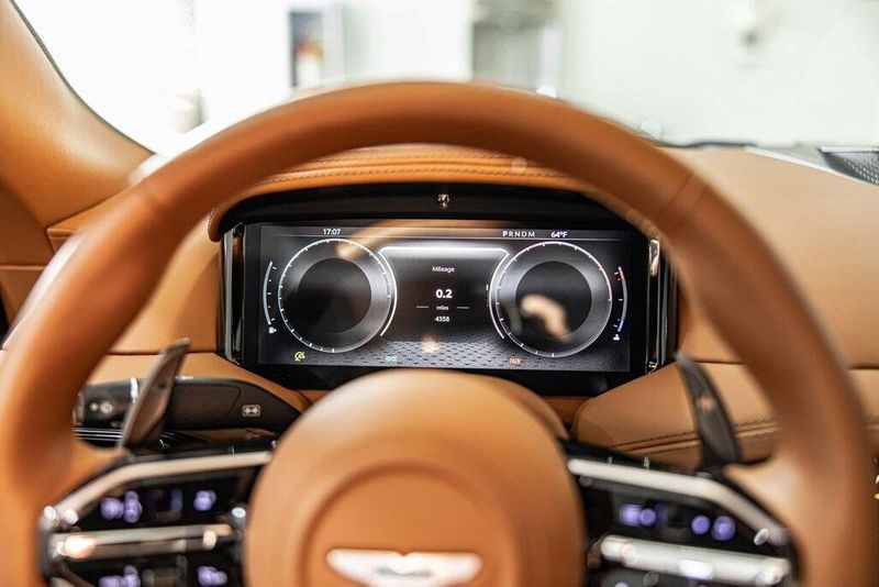2025 Aston Martin DB12 Volante RWD V8 Podium Green One Owner, Clean CARFAX, Navigation, Leather Seats, Heated Seats, Backup Camera, Memory Seats, Cooled Seats, Premium Sound System, Premium Audio, Multi-Zone Climate Control, 16 Way Electric Front Seats w/Memory, Bowers & Wilkins 1170 Watts Surround Sound Audio Sys, Carbon Ceramic Brakes, Contrast Stitching, Heated Sports Steering Wheel, Inspire Comfort Environment - Monotone, Leather & Gloss Black IP/Door Trim Inlay, Leather steering wheel, Navigation System, Satin Dark Chrome Interior Jewellery, Seat Ventilation, Semi-Aniline Leather Seat Trim, Wheels: 21'' Multi-Spoke Satin Black DT Forged, Yellow Painted Brake Calipers. Recent Arrival!