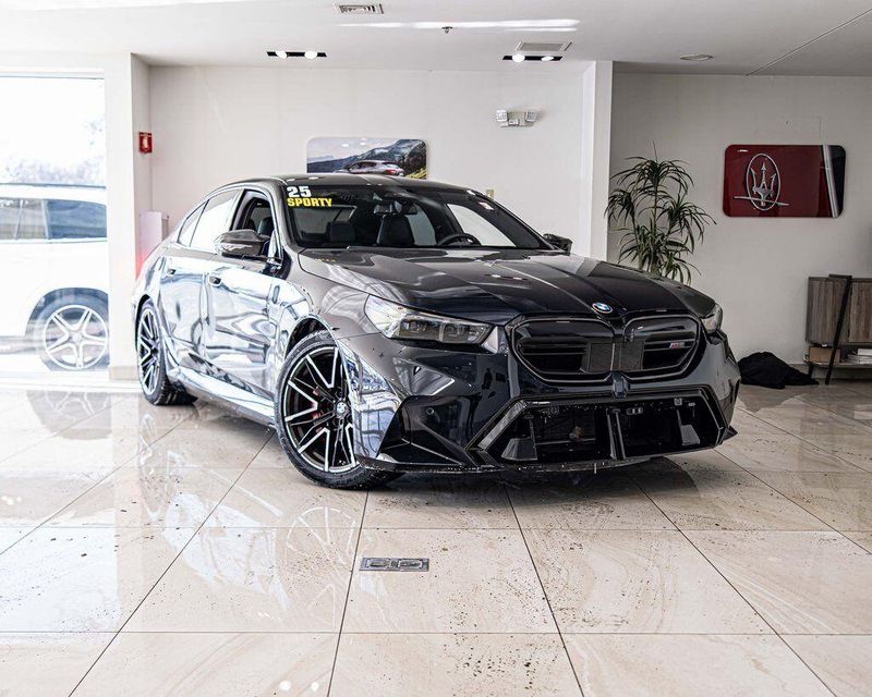 2025 BMW M5 Base AWD 4.4L V8 Turbocharged DOHC 32V LEV3-SULEV30 Carbon Black Metallic Clean CARFAX, AWD, Navigation, Sunroof, Leather Seats, Heated Seats, Backup Camera, Memory Seats, Cooled Seats, Premium Sound System, Silverstone/Black w/Extended Merino Leather Upholstery, Active Driving Assistant Pro, BMW Iconic Glow Kidney Grille, Carbon Fiber Reinforced Polymer Roof, Carbon Package, Connected Package Pro, Driving Assistance Professional Package, Executive Package, Front & Rear Heated Seats, Front Ventilated Seats, Interior Camera, M Carbon Exterior Package, Mirror Caps, Navigation System, Parking Assistant Plus, Power Rear Sunshade & Rear Side Window Shades, Spoiler. Priced below KBB Fair Purchase Price!