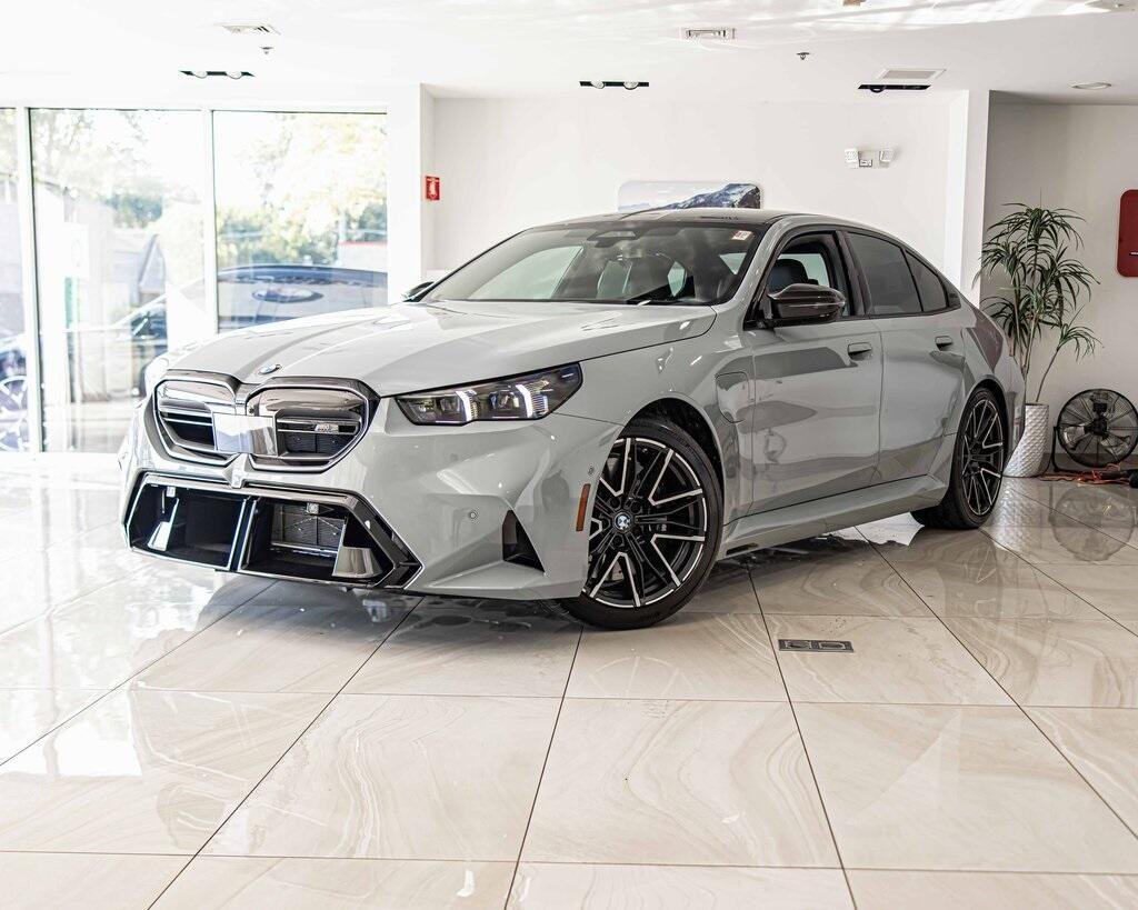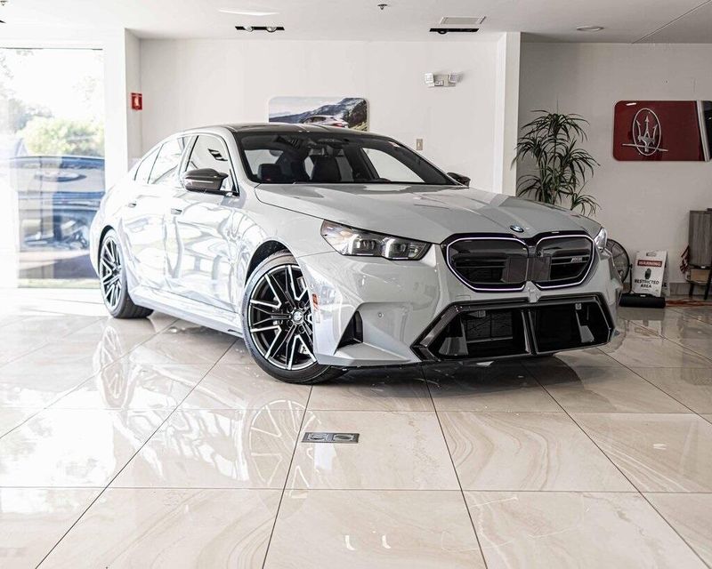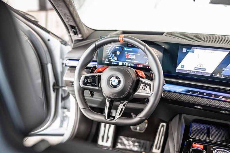 2025 BMW M5 Base AWD 4.4L V8 Turbocharged DOHC 32V LEV3-SULEV30 Brooklyn Gray Metallic One Owner, Clean CARFAX, AWD, Navigation, Sunroof, Leather Seats, Heated Seats, Backup Camera, Memory Seats, Cooled Seats, Premium Sound System, Premium Audio, Multi-Zone Climate Control, Bluetooth, Hands-Free, USB Port, Portable Audio Connection, Apple CarPlay/Android Auto, Steering Wheel Controls, Black w/Extended Merino Leather Upholstery, 18 Speakers, Active Driving Assistant Pro, AM/FM radio: SiriusXM, Apple CarPlay & Android Auto Compatibility, BMW Assist eCall, BMW Curved Display w/HUD, BMW Iconic Glow Kidney Grille, BMW TeleServices, Bowers & Wilkins Surround Sound, Carbon Fiber Reinforced Polymer Roof, Carbon Package, Connected Package Pro, ConnectedDrive Services, Driving Assistance Professional Package, Executive Package, Front & Rear Heated Seats, Front Ventilated Seats, Interior Camera, M Carbon Exterior Package, Mirror Caps, Navigation System, Parking Assistant Plus, Personal eSIM 5G, Power Rear Sunshade & Rear Side Window Shades, Radio: AM/FM Audio System, SiriusXM Satellite Radio w/1-Year Subscription, Spoiler, Wheels: 20'' x 10.5'' Fr & 21'' x 11'' Rr M Dual-Spoke, Wireless Device Charging. Recent Arrival! Odometer is 1945 miles below market average!