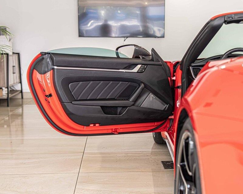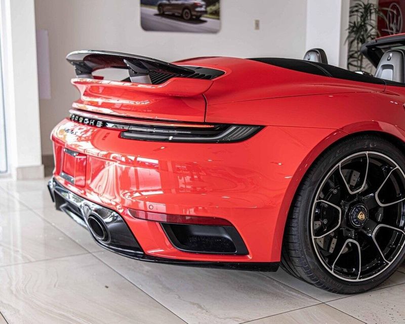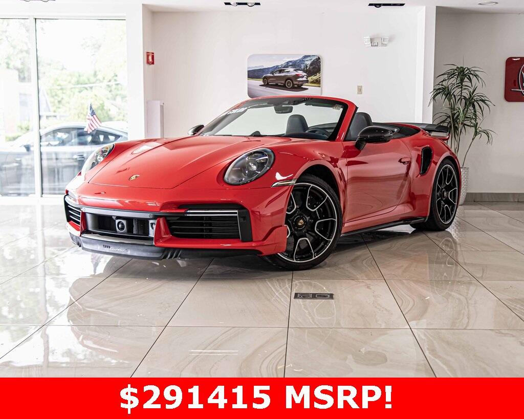 2025 Porsche 911 Turbo S AWD 3.8L H6 Turbocharged DOHC 24V LEV3-ULEV70 572hp Guards Red One Owner, Clean CARFAX, AWD, Navigation, Sunroof, Leather Seats, Heated Seats, Backup Camera, AWD, 18-Way Adaptive Sport Seats Plus w/Memory Package, 911 Turbo SportDesign Package in High Gloss Black, ABS brakes, Alloy wheels, Ambient Lighting, Burmester High-End Surround Sound System, Electronic Stability Control, Engine Compartment Cover in Titanium Grey, Exclusive Design Taillights, Exterior Mirror Upper Housing in Carbon Fiber, Front Axle Lift System, Front dual zone A/C, Heated door mirrors, Heated front seats, Illuminated entry, Ionizer, Lane Change Assist (LCA), LED-Matrix Design Headlights in Black w/PDLS+, Low tire pressure warning, Navigation System, Navigation system: Porsche Communication Management (PCM), Night Vision Assist, Porsche Ceramic Composite Brakes, Porsche Communication Management, Rear Side Air Intakes in High Gloss Black, Remote keyless entry, Security system, Sport Exhaust System w/Exclusive Design Tailpipes, Surround View, Traction control, Under Door Puddle Light Projectors, Wheels: 20'' Front/21'' Rear 911 Turbo S.
