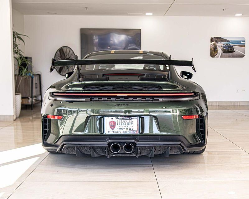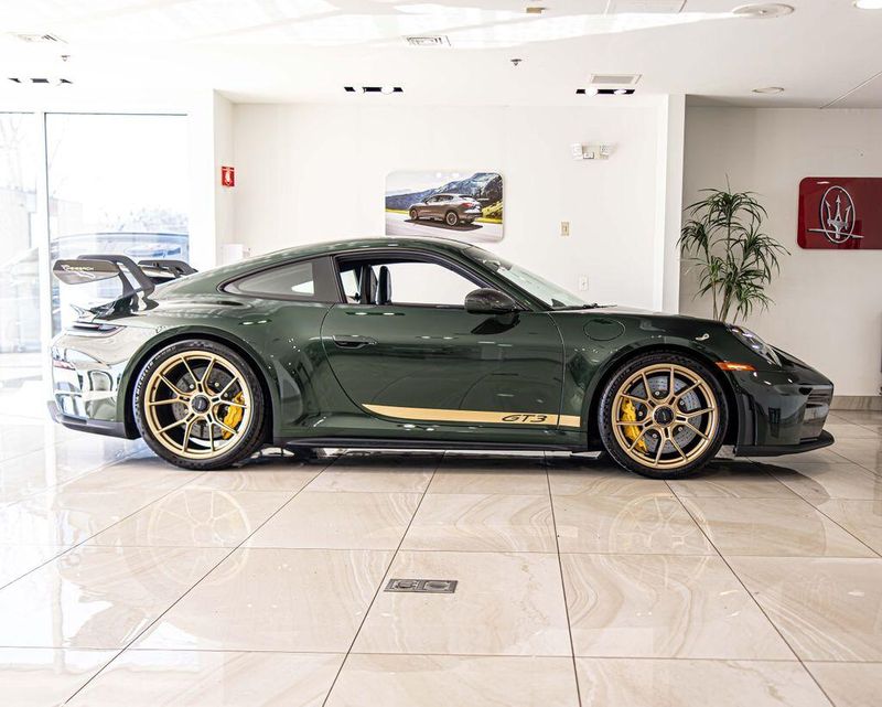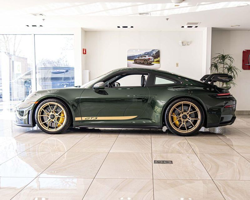 2026 Porsche 911 GT3 RWD 4.0L H6 DOHC 24V LEV3-LEV160 502hp Oak Green Metallic Neo One Owner, Clean CARFAX, Navigation, Leather Seats, Heated Seats, Backup Camera, BOSE Surround Sound System, Center Console Lid in Race-Tex with Porsche Crest, Chrono Package, Colored Exterior Decal Accent Stripes, Extended Range 22.1 Gallon Fuel Tank, Folding Lightweight Bucket Seats, Front Axle Lift System, HD-Matrix Design LED Headlights in Black, Illuminated Bespoke Matte Carbon Fiber Door Sill Guards, Leather/Race-Tex Seat Trim with Leather and Race-Tex Interior, Navigation system: Porsche Communication Management (PCM), ParkAssist Rear, Porsche Ceramic Composite Brake, PORSCHE Logo Decal on Side in California Gold, Seat Belts in Silver Grey, Sound Package Plus, Sport Chrono Stopwatch in White, Storage Net in Passenger Footwell, Weissach Package Logo on Rear Wing Endplates, Wheels Painted in High Gloss California Gold. Odometer is 1033 miles below market average!